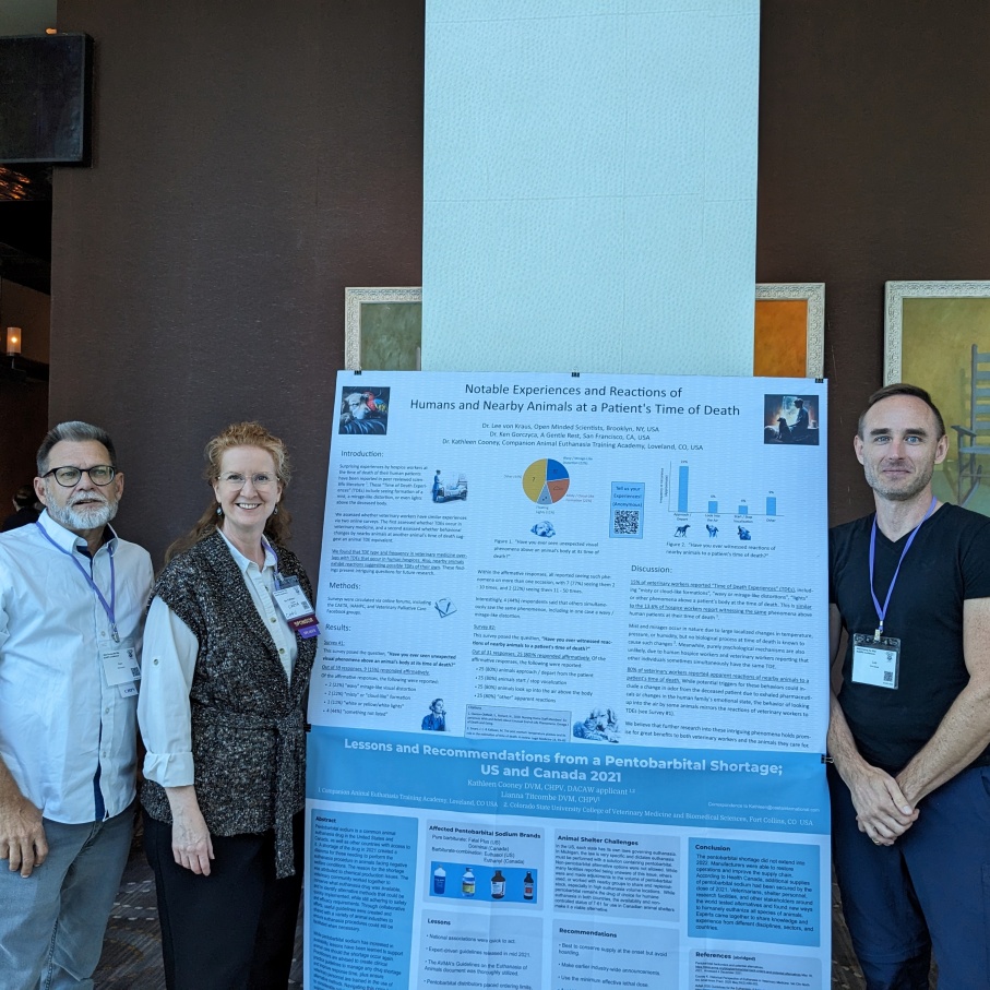 Dr. Lee von Kraus, Dr. Kathleen Cooney, and Dr. Ken Gorczyca will be presenting results of OMS's "time of death experiences" survey at the 2025 conference of the International Association for Animal Hospice and Palliative Care (IAAHPC).