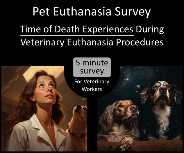We've begun a survey of veterinarians to assess whether they have surprising "time of death experiences" during euthanasia procedures, like to those reported by healthcare workers in human hospices.