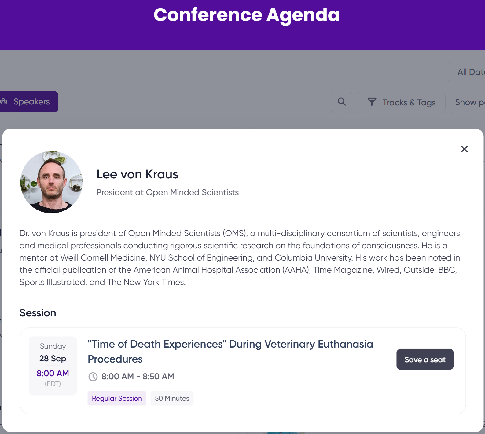 Based on data from our recent survey of veterinary professionals' time of death experiences (TDEs), we've received IRB approval to conduct "The Rainbow Bridge Study". In this study, we seek to measure and objectively verify the occurrence of purported death-correlated phenomena that have so far been only subjectively reported as TDEs. The Rainbow Bridge Study is being conducted in collaboration with OMS research associates Dr. Kathleen Cooney and Dr. Lori Kogan. If you are a veterinary professional interested in participating, please reach out to us at info@OpenMindedScientists.org.